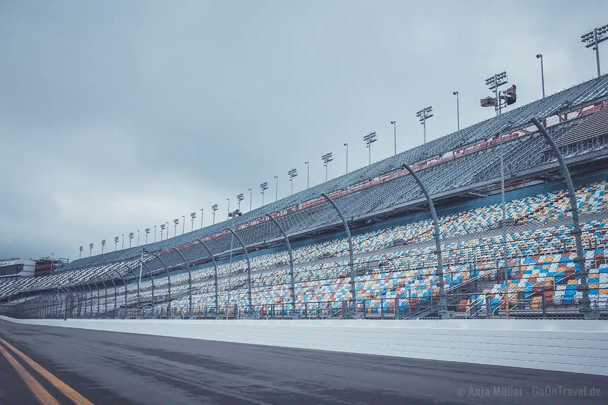 Noch immer beeindruckt vom Vortag geht es weiter Richtung Norden. Es steht der Besuch von St. Augustine an, der ältesten Stadt in den USA. Doch vorher wartet noch ein Besuch in Daytona und einer der bekanntesten Rennstrecken der Welt auf mich. Vor der Führung über der Rennstrecke, bei der ich unter anderem die Start- und Ziellinie, die Zuschauerränge und die Boxengasse besuche, geht es mit den Mietwagen an den Strand. Denn am Strand von Daytona fanden die ersten Autorennen statt, als es noch gar keine Rennstrecken gab.