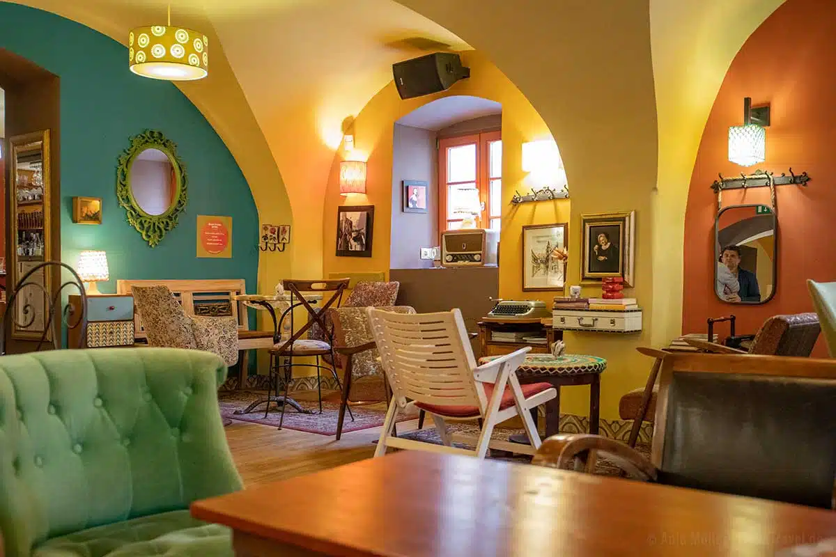 Mitten in der historischen Altstadt von Ptuj befindet sich etwas verborgen das MuziKafe. Wie der Name es schon verrät, dreht sich hier alles um Musik, was das Ambiente im ersten Augenblick allerdings nicht erahnen lässt.